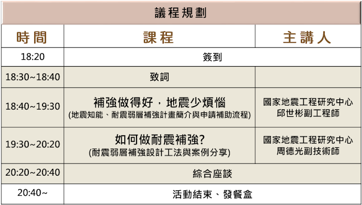 【地點】:國家地震工程研究中心(台北市大安區辛亥路三段 200 號)