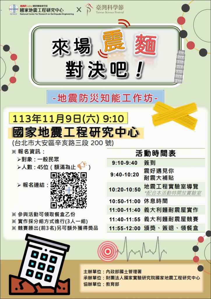 來場「震」「麵」對決吧 !-地震防災知能工作坊(2024/11/9)